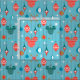 This Christmas pattern features the iconic mickey head silhouette along with festive holiday ornaments on a blue background.