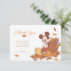 Express your gratitude with this charming fall-themed baby shower thank you card featuring Mickey Mouse! The beloved Disney character is depicted amidst a cozy pile of colorful autumn leaves, sitting beside a rustic basket filled with seasonal produce. The warm hues of orange and brown create a delightful harvest atmosphere. The card prominently displays "Thank You" in a friendly script, making it a perfect way to send heartfelt appreciation to your guests after a baby shower.