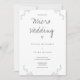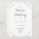 A wedding invitation for a micro wedding. This invitation is done in gray on white and features outlined leaf details. Simply add your information, add this invite to your cart, and enjoy your small and intimate wedding.