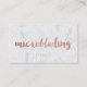 A modern, stylish eyebrows microblading business card with modern hand lettering style brush typography in faux rose gold foil on a trendy and elegant white marble background. If you need any customization, don't hesitate in contacting me