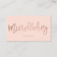 An elegant modern, stylish microblading artist business card with elegant script lettering style typography in faux rose gold foil on a trendy and elegant blush pink background.
