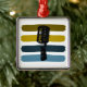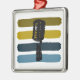 Illustration of silhouetted microphone with colorful paint swatches in background on a Christmas ornament. Perfect for the singer and musician at Christmas time.