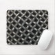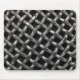 Close up photograph of a microphone creating an interesting crisscross metallic patterned background.