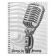 A notebook, for writing your song lyrics, that can be personalized with your name. Charcoal drawing of an old microphone.