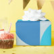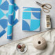 This wrapping paper featuring Geometric Mid century modern abstract shapes shapes pattern in blue and turquoise .