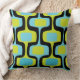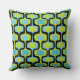 Mid-Century Aqua Chartreuse & Black Retro Pattern Throw Pillow