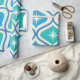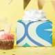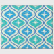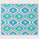 This is elegant mid century modern atomic starburst pattern placed on blue and teal ogee ovals on beige background. It's great looking wrapping paper for anyone who love retro geometric designs