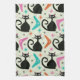 Mid Century Black Atomic Cats with Boomerangs Kitchen Towel