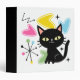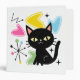 Colorful abstract Mid Century style illustration with black cat, black stars and colorful geometric shapes decoration on white background
