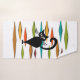 Colorful abstract Mid Century style illustration with black cat and colorful rhombuses decoration on white background