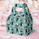 Colorful abstract Mid Century style pattern with black cat, black stars and colorful (blue, white, pink) cubes decoration on turquoise background for every cat lover, cat mom and cat dad.