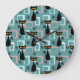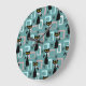 Mid Century black cat pattern Large Clock