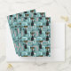 Colorful abstract Mid Century style pattern with black cat, black stars and colorful (blue, white, pink) cubes decoration on turquoise background for every cat lover, cat mom and cat dad.