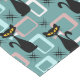 Colorful abstract Mid Century style pattern with black cat, black stars and colorful (blue, white, pink) cubes decoration on turquoise background for every cat lover, cat mom and cat dad.