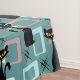 Colorful abstract Mid Century style pattern with black cat, black stars and colorful (blue, white, pink) cubes decoration on turquoise background for every cat lover, cat mom and cat dad.