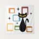 Colorful abstract Mid Century style illustration with black cat, black stars and colorful cubes decoration on white background. You can add your name/monogram to personalize the item.