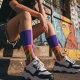 Step up your style game with these eye-catching, vibrant geometric socks. Featuring a bold explosion of purple, magenta, yellow, and green in a dynamic abstract pattern, these socks are designed for those who aren't afraid to stand out.