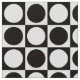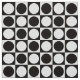 Modern abstract checkerboard design of circles and squares in classic black and white