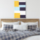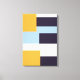 Contemporary color blocking wrapped canvas. Mid century incorporating white, yellow, blue, navy blue canvas office art.