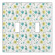 Mid-Century Modern switch plate cover dandelion clocks, flowers and leaves in shades of yellow and blue on a white background.