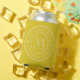 Mid-Century Dark Lemon Wedding Monogram Star Can Cooler