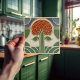 This exquisite mid-century modern ceramic tile is a loving homage to the time-honored Arts and Crafts movement. Expertly crafted in our Barcelona workshop, it features abstract symmetrical shapes and imitates the captivating allure of mid-century modern faux relief tiles. The symmetrical designs echo a harmonious balance, the ideal expression of abstract aesthetics of mid-century modernism.