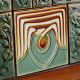 This exquisite mid-century modern ceramic tile is a loving homage to the time-honored Arts and Crafts movement. Expertly crafted in our Barcelona workshop, it features abstract symmetrical shapes and imitates the captivating allure of mid-century modern faux relief tiles. The symmetrical designs echo a harmonious balance, the ideal expression of abstract aesthetics of mid-century modernism.