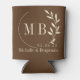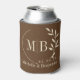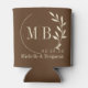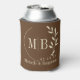 Mid-Century Forest Brown Leaf Wedding Monogram Can Cooler
