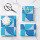 Mid century Geometric Blue Shapes Pattern Wrapping Paper Sheets