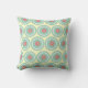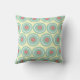 Brighten your space with this eye-catching geometric throw pillow, featuring a grid of concentric circles in mint green, coral orange, and white, against a soft yellow backdrop. The symmetrical layout and colorful palette channel a retro-modern aesthetic, perfect for adding a splash of vintage flair to contemporary decor. Whether styled in a reading nook, lounge chair, or mod-inspired room, this design brings cheerful rhythm and visual punch.