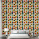 Transform your space with this eye-catching mid century modern geometric wallpaper, designed to bring warmth, energy, and retro charm into any room. Featuring a bold arrangement of clean lines and simple textured shapes, this pattern blends vibrant hues of orange, mustard yellow, teal, and earthy tones for that perfect vintage-meets-modern aesthetic.