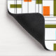Retro grid pattern with blocks in olive green, orange and aqua.