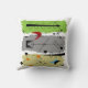 Mid-Century Modern Pillow colors relevant to Atomic Era with atomic abstracts in black. Back of pillow in coordinating design and signed by the artist. . Perfect for any mid-century modern home.