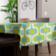 Mid-Century Lime and Aqua Ovals and Circles Tablecloth