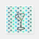 Mid Century Martini Glass Design Napkins by © Cathy Thompson. Shades of Blue and Turquoise abstract design with hand drawn martini glass with an olive (of course).