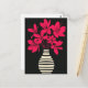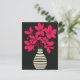 A bright fuchsia bouquet dances in a black-striped vase on a zesty yellow background—high-energy and eye-catching.