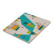 Mid-century modern abstract in geometric shapes, colors of teal, orange and lime.