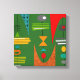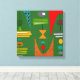 Mid-Century Modern Wrapped Canvas, colorful funky abstract squares and moon shapes in shades of orange, gold, avocado and teal and grey. A perfect addition to your mid century style.