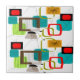 Mid-Century Modern Abstract Design in Teal, red, gold, black and lime green colors. Artist reproduced design based on a swatch of fabric from atomic era.