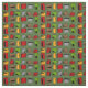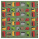 Mid-Century Modern Half Moons Fabric in green, red, brown, grey and yellow on an orange background.