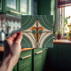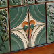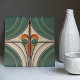 This exquisite mid-century modern ceramic tile is a loving homage to the time-honored Arts and Crafts movement. Expertly crafted in our Barcelona workshop, it features abstract symmetrical shapes and imitates the captivating allure of mid-century modern faux relief tiles. The symmetrical designs echo a harmonious balance, the ideal expression of abstract aesthetics of mid-century modernism.