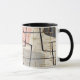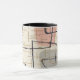 This Mid Century Modern Abstract Fabric Mug features a replica of a vintage 1950's fabric. The background is ecru with black and gold lines. The fabric also features grey and pink modern art shapes. It's a blast from the past! This is the perfect design for anyone who loves items with a retro feel.