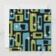 Retro Mid Century Modern Abstract Pattern Black Blue & Green.