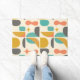 Infuse your space with playful retro energy through this vibrant mid-century modern abstract pattern that radiates joy and sophistication. Bold organic shapes—curved semi-circles, wavy blobs, rounded rectangles, and sparkling starbursts—dance in mustard yellow, teal blue, coral pink, and charcoal gray on a soft cream background. The textured, hand-crafted feel and harmonious color blocking evoke classic 1950s-60s design.
