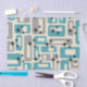 Retro Mid Century Modern Abstract Pattern in Blue Gray & Cream.