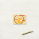 These notes have a mid-century modern abstract design of a gold circle inside a green circle with orange and white stripes.
