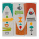 Mid-century modern abstract art using straight lines and multi-colored bubbles.