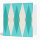 This Mid Century Modern Argyle Binder features a vibrant, turquoise background and a pattern of mod, translucent teal diamonds overlaying larger, vintage cream diamonds with gold colored, space age speckles. This minimalist inspired, deconstructed argyle is a simplistic throwback of the larger than life atomic era that dominated the decorating landscape of the 1950s and 1960s. This kitschy design is reminiscent of everything from retro Palm Springs’ bowling alley signs to the television trays you used at your grandma’s house.