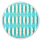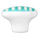 This Mid Century Modern Argyle Ceramic Pull (small print) features a vibrant, turquoise background and a pattern of mod, translucent teal diamonds overlaying larger, vintage cream diamonds with gold colored, space age speckles. This minimalist inspired, deconstructed argyle is a simplistic throwback of the larger than life atomic era that dominated the decorating landscape of the 1950s and 1960s. This kitschy design is reminiscent of everything from retro Palm Springs’ bowling alley signs to the television trays you used at your grandma’s house.