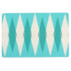 This Mid Century Modern Argyle Floor Mat features a vibrant, turquoise background and a pattern of mod, translucent teal diamonds overlaying larger, vintage cream diamonds with gold colored, space age speckles. This minimalist inspired, deconstructed argyle is a simplistic throwback of the larger than life atomic era that dominated the decorating landscape of the 1950s and 1960s. This kitschy design is reminiscent of everything from retro Palm Springs’ bowling alley signs to the television trays you used at your grandma’s house.